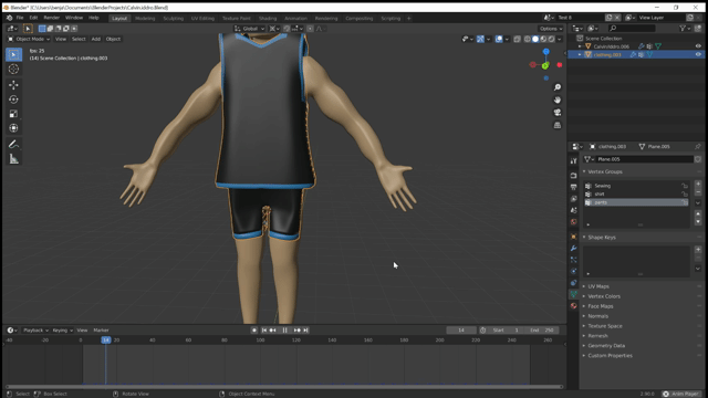 Make something cool with this tutorial? Add a vertex group and set the left most edge to weight: Blender artists is an online creative forum that is dedicated to the growth and education of the 3d software blender. As you can see, the cloth simulates alright, but it doesn't self collide (as it shouldnt). The issue here however, is the cloth pinning (the top ring of vertices at the top of the pants are pinned and parented to the character).. Press the 'apply as shape key' button on the cloth modifier.